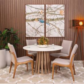 Mesa de Jantar Redonda 4 Lugares 90cm em MDF Gabi Branco e Jade -