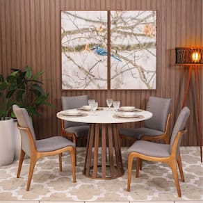 Mesa de Jantar Redonda 4 Lugares 90cm em MDF Gabi Branco e Noronha -