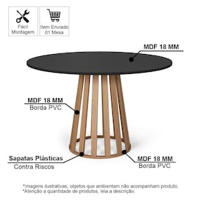 • 1 Mesa de Jantar Redonda 4 Lugares 90cm em MDF Gabi 1 Manual de Montagem 1 Kit de Parafusos e chave para montagem.