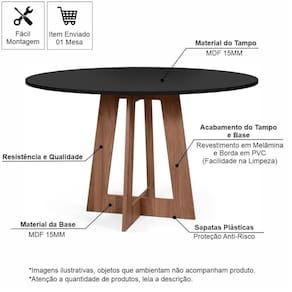 Produtos Entregues: 01 Mesa de Jantar (Demais produtos são meramente ilustrativos, não fazendo parte da entrega);