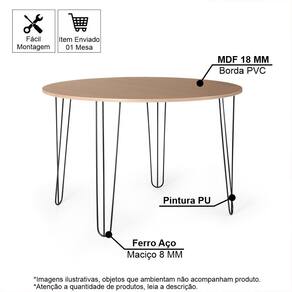 Mesa de Jantar Industrial Hairpin Redonda 120cm - Conforto, Design e Integração para 6 Lugares