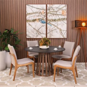 Mesa de Jantar Redonda 6 Lugares 120cm em MDF Gabi Preto e Noronha -