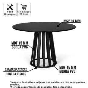 Mesa de Jantar Redonda 6 Lugares 120cm em MDF Gabi Preto -