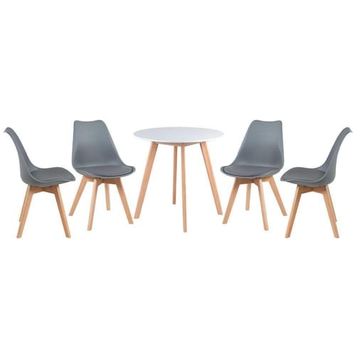 Altura: 70 cm | Cor: Multicolorido | Garantia do fabricante: 3 meses | Largura: 70 cm | Peso do produto: 20 kg | Produto: Conjunto de Mesa e Cadeiras | Quantidade de lugares: 4 | Material do tampo (mesa): MDF laqueado (laca fosca) | Material da base (mesa): Madeira | Altura (mesa): 70 cm | Diâmetro (mesa): 70 cm | Material do assento (cadeiras): Couro PU | Material da base (cadeiras): Madeira | Altura do encosto (cadeiras): 82 cm | Altura do assento (cadeiras): 44 cm | Largura do assento (cadeiras): 48 cm | Profundidade do assento (cadeiras): 43 cm | Fabricante: Mobili | RBN: 17100657011 Cor: Mesa branco com cadeiras cinza escuro
