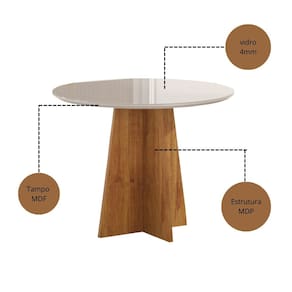 Mesa de Jantar Redonda 90cm com Tampo de Vidro Celeste Viero A Mesa Celeste Redonda 90cm e ideal para 4 lugares e valoriza ambientes compactos com funcionalidade e estilo. A base em MDP garante estabilidade, enquanto o tampo em MDF com vidro colado de 4 mm oferece durabilidade e acabamento sofisticado. A pintura UV semibrilho facilita a limpeza e realca o visual. Com bordas suaves para mais seguranca e capacidade para ate 50 kg, e perfeita para refeicoes em familia ou encontros com amigos.