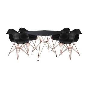 Mesa De Jantar Redonda Eames Eiffel 90cm Preta Com 4 Poltronas Pretas Ferro Cobre O Conjunto de Mesa Eames Eiffel e Poltrona Daw se destaca pelo design moderno e sofisticado. Com base em ferro que confere total resistência, garantindo melhor durabilidade, sendo uma ótima escolha para quem busca conforto e design único.Tipo: ConjuntoModelo: DawCor do Tampo: PretoCor do Assento: PretoCARACTERÍSTICASAssento: PolipropilenoTampo: PretoBase: FerroGarantia: 90 DiasDIMENSÕES DA POLTRONAAltura: 80cmAssento até o chão: 40cmBraço do assento até o chão: 65cmLargura: 38cmComprimento: 38cmSuporta até: 120kgDIMENSÕES DA MESAAltura: 76cmDiâmetro: 90cmRECOMENDAÇÕESLimpeza: Utilize um pano macio levemente úmido.Necessita montagem.ATENÇÃOAS IMAGENS SÃO MERAMENTE ILUSTRATIVAS E PODEM SOFRER VARIAÇÕES DE COR E PEQUENOS DETALHES DE ACORDO COM O SEU MONITOR, ILUMINAÇÃO DO AMBIENTE E ATÉ MESMO A SUA PERCEPÇÃO VISUAL.Mesa de Jantar Redonda Eames Eiffel 90cm Preta com 4 Poltronas Pretas Ferro Cobre