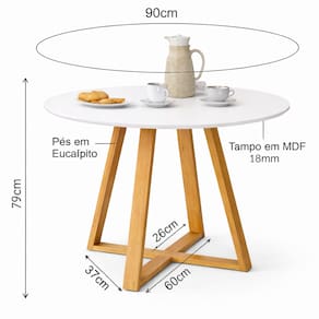 Mesa De Jantar Redonda Branca Livia Moderna 90cm Pés Madeira - Branco