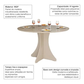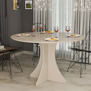 Mesa de Jantar Redonda Branco Off White 90cm Moderna e Aconchegante