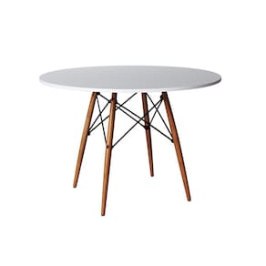Mesa de Jantar Redonda Eiffel Eames em Madeira 90cm Branca com 4 Poltronas Brancas - Branco