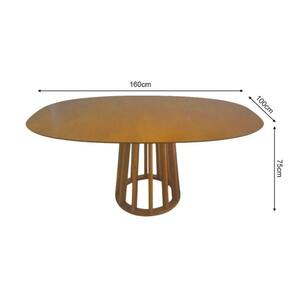 Com tampo retangular de 160 cm de largura e 100 cm de profundidade, a mesa acomoda confortavelmente até 6 pessoas, sendo ideal para salas de jantar, varandas gourmet ou ambientes corporativos de alto padrão.