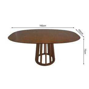 Com tampo retangular de 160 cm de largura e 100 cm de profundidade, a mesa acomoda confortavelmente até 6 pessoas, sendo ideal para salas de jantar, varandas gourmet ou ambientes corporativos de alto padrão.