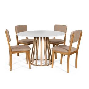 Mesa de Jantar Redonda Gabi com 4 Cadeiras Estofadas Madeira Maciça Ella