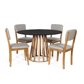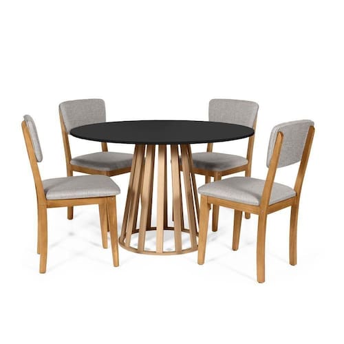 Mesa de Jantar Redonda Gabi com 4 Cadeiras Estofadas Madeira Maciça Ella