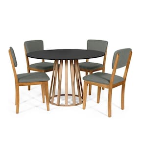 Mesa De Jantar Redonda Gabi Pret/jade Com 4 Cadeiras Estofadas Ella Cinza