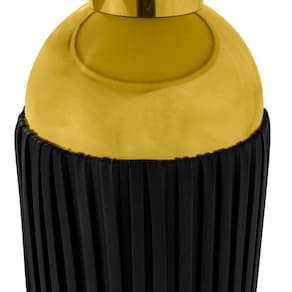 O design contemporâneo combina linhas suaves e acabamentos premium, unindo a imponência do dourado com a leveza do mármore sintético. Essa harmonia entre brilho e textura cria uma presença marcante, ideal para quem valoriza móveis com personalidade e apelo visual.