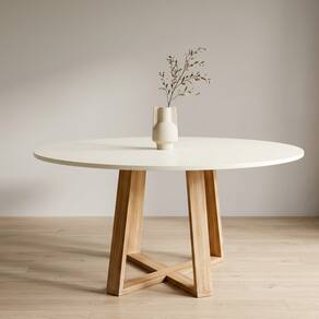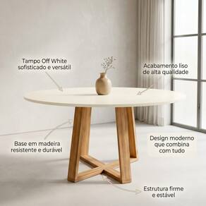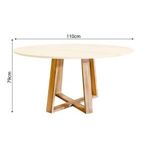Mesa De Jantar Redonda Livia 110cm Off White Pés Em Madeira