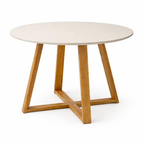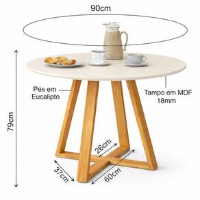 Mesa De Jantar Redonda Livia 90cm Off White Pés Em Madeira