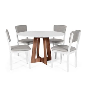 Mesa de Jantar Redonda Montreal com 4 Cadeiras Estofadas Madeira Maciça Ella