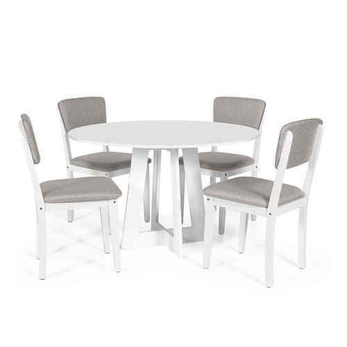 Mesa de Jantar Redonda Montreal com 4 Cadeiras Estofadas Madeira Maciça Ella