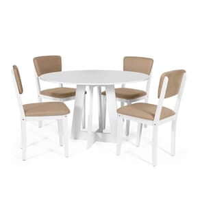 Mesa de Jantar Redonda Montreal com 4 Cadeiras Estofadas Madeira Maciça Ella