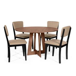 Mesa de Jantar Redonda Montreal com 4 Cadeiras Estofadas Madeira Maciça Ella