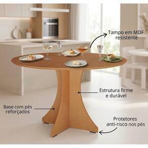 Mesa de Jantar Redonda Nature Elisa 90cm MDF Compacta e Elegante - Marrom | Natural