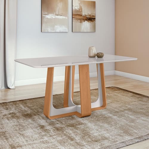 O detalhe Off-White na base com pintura U.V alto brilho e acabamento em micro textura traz um toque contemporâneo e refinado, combinando com diferentes estilos de decoração. Suas bordas chanfradas e arredondadas oferecem não apenas design elegante, mas também segurança no uso diário.