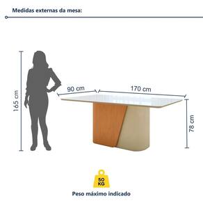 Combina com a decoração para sala de estar? Claro, fica perfeita na decoração para sala de jantar e outros ambientes. Acabamento: Pintura Acabamento da Base: Pintura Acabamento do Tampo: Pintura Ambiente Principal: Sala de Jantar codigo_ean: 7900288129970 Complexidade da Montagem: Alta: deve ser montado por um montador especializado Cor: Amêndoa Clean/Off White Cor do Produto: Amêndoa Clean/Off White Escala de Brilho: Fosco Espessura do Tampo: 29 mm Extensível: Não Itens Inclusos: 1 Mesa, Kit Ferragens e Manual de Montagem Manual de Montagem e Instalação: https://cdn2.madeiramadeira.com.br/prd/mOveis-lopas/2761938-1742905964-982687-151245.pdf Marca: Móveis Lopas Material da Base: MDP Material do Tampo: MDF Material Principal: MDF/MDP Medida da Mesa (A x L x P): 78x170x90 Medida do Tampo (L x C x E): 170x90x29 Necessita Montagem: Sim Origem do Produto: Nacional Peso: 69,58 kg Possui Rodízio: Não Possui Vidro: Sim Recomendações de Uso, Manutenção e Limpeza: Limpar com flanela limpa e seca. Não usar produtos abrasivos. Sistema de Montagem: Parafusos. Suporta Até (kg): 50 kg