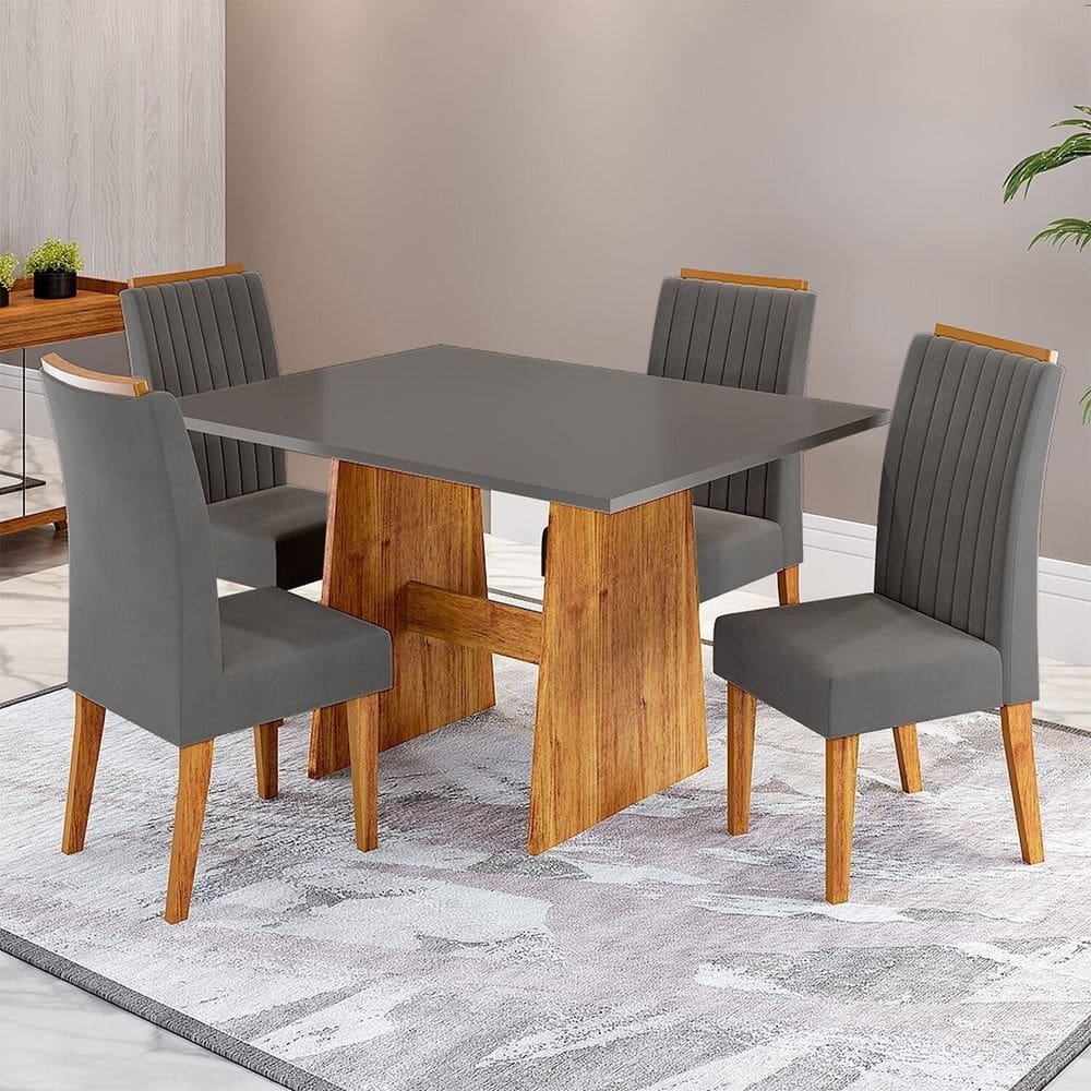mesa de jantar retangular 78x80x120cm com tampo em mdp pm250045 carvalho cromado pozza