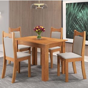 A Sala de Jantar CANELA tem design moderno, perfeito para reunir a família e os amigos ao redor de uma mesa sofisticada e elegante que proporcionará aos convidados situações mais agradáveis e descontraídas Medida da Mesa (A x L x P): A:75,6 x L:110 x P:75cm Peso da Mesa: 16,5 kg Mesa suporta até: 50.0000 Acabamento da Cadeira/Banco: Pintura UV Acabamento da Mesa: Pintura UV Acompanha Manual de Instalação: Sim Ambiente Principal: Sala de Jantar Cadeira/Banco estofada: Encosto e Assento Estofados Cadeira/Banco Estofada: Encosto e Assento Estofados Cadeira/Banco suporta até: 90.0000 codigo_ean: 7909903467831 Complexidade da Montagem: Média: pode ser montado por mais de uma pessoa e/ou necessite de maior conhecimento para montagem Cor: Mel/Marfim Cor do Produto: Mel/Marfim De Canto (Canto Alemão): Não Enchimento do Assento: Espuma D-16 Enchimento do Encosto: Espuma D-12 Escala de Brilho: Semi-Brilho Espessura do Tampo: 15 mm Estrutura do Assento: MDP/Espuma Formato do Tampo: Retangular Informações Complementares: Sala de Jantar 4 Lugares Itens Inclusos: 1 Mesa, 4 Cadeiras, Manual de Montagem e Kit Ferragens Manual de Montagem e Instalação: https://product-hub-prd.madeiramadeira.com.br/875602/documents/2b85e8cd-212e-48b2-a69a-806981853dbb15914mesapalacecomcaddalas.pdf Material da Base da Mesa: MDP Material da Estrutura da Cadeira: MDF/MDP Material do Tampo: MDP Material Principal: MDF/MDP Material Principal das Cadeiras/Bancos: MDF/MDP Medida da Cadeira/Banco (A x L x P): A:98,5 x L:38 x P:50,2cm Medida do Tampo (L x C x E): 110x75x1,5cm Mesa Extensível: Não Necessita Montagem: Sim Origem do Produto: Nacional Peso da Cadeira/Banco: 6,9 kg Possui Apoio Para os Pés: Não Possui Vidro: Não Quantidade de Cadeiras: 4 Quantidade de Lugares: 04 Recomendações de Uso, Manutenção e Limpeza: Limpar com pano levemente umedecido com água Revestimento da Cadeira/Banco: Veludo Sistema de Montagem: Parafusos, cavilhas Ean: 7909903467831