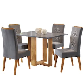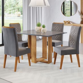 Mesa de Jantar Retangular Catedral Com 4 Cadeiras Flora em Madeira Maciça Cobre/Cinza Brilho/V.grafite - Casa Giulia