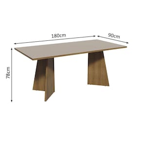 A mesa destaca-se por seu estilo inovador e elegante, contando com amplo espaço e um visual arrojado. O tampo, fabricado em MDP, oferece uma superfície robusta e estável, ideal para todas as suas refeições.