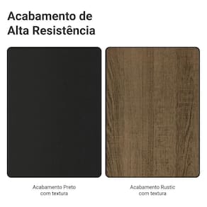 O acabamento de alta resistência combina os tons preto e amadeirado Rustic, trazendo maior durabilidade ao móvel.