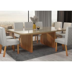 A Mesa de Jantar Rimini, com 2,20 metros de comprimento, é a escolha ideal para quem deseja receber amigos e familiares com elegância e praticidade. Seu tampo em vidro colado, com bordas arredondadas em PVC, combina sofisticação e segurança. A estrutura em MDF com acabamento natural oferece durabilidade e um design contemporâneo, tornando essa mesa o destaque da sua sala.