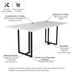 Produto Entregue: 01 Mesa de Jantar (Demais produtos são meramente ilustrativos, não fazendo parte do produto);