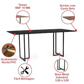 Em seu desenho industrial, com leves linhas retas, em seu design robusto proporcionando estilo ao ambiente. Estrutura produzida em Metal com tampo em MDF 18MM; Matéria-prima e acabamento garantem a durabilidade, e resistência perfeitas para seu uso do dia a dia. Conta ainda com sapatas plásticas, evitando assim riscos em seu piso e assoalhos.