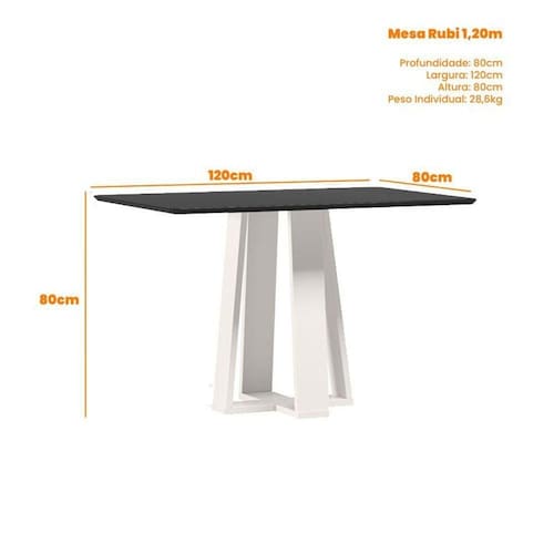 Mesa de Jantar Rubi 120x80 cm com Vidro Off White Preto New Ceval