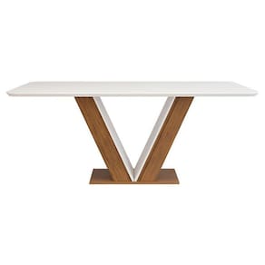 Mesa de Jantar Rute Tampo Chanfrado Curvo Freijó Off White - Dj Móveis