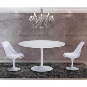 Mesa de Jantar Saarinen Redonda, Tampo 90 cm em MDF Laminado em Madeira, com contra tampo em MDF, Base em alumínio fundido com pintura automotiva PU. A famosa mesa Tulipa é conhecida nacional e internacionalmente devido ao nome do criador, o grande e renomado arquiteto Eero Saarinen, desenhada em 1956, a sua Base lembra o caule da flor Tulipa. O design orgânico desse Mesa faz dela umas das peças mais cobiçadas desde sua criação em 1956, fácil de combinar ela fica bem em qualquer ambiente, na cozinha, na sala, e até como mesa lateral no quarto, a peça inspira versatilidade.