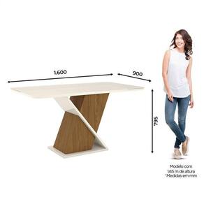 Mesa de Jantar Solus 160 cm Canto Arredondado com Vidro Nature Off White Henn