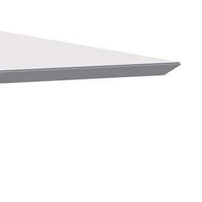 Conta com estrutura e tampo chanfrado em MDF 30 mm, possui um vidro laqueado de 3 mm sobreposto e pintura UV, oferecendo um acabamento moderno e sofisticado.