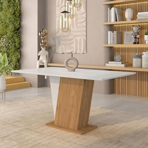 A Mesa Qatar é ideal para acomodar até 6 pessoas com muito aconchego. Você pode escolher qual jogo de cadeiras mais combina com seu ambiente, pois é vendida avulsa. Possui o Tampo no MDF 25mm super resistente e acabamento em pintura UV Brilho. Sua base no MDP oferece estabilidade e acabamento em pintura UV Texturizada no cinamomo com branco unificando elegância e combinação com vários estilos de decoração.