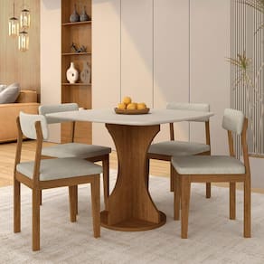 Design atual e elegância é com a Mesa Marshall! Possui Tampo Orgânico trazendo um visual sofisticado. Cadeiras estofadas em Suede com toque macio, resistente e acabamento impecável!