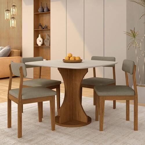 Design atual e elegância é com a Mesa Marshall! Possui Tampo Orgânico trazendo um visual sofisticado. Cadeiras estofadas em Suede com toque macio, resistente e acabamento impecável!