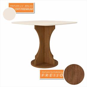 Detalhes Técnicos da Mesa Acabamento: Pintura UV Texturizada Material da Base: MDF 15/25MM Material do Tampo: MDF 25MM Medida da Mesa Montada:L:90CMxP:90CMxA:80CM Tonalidade da Mesa: Freijó/Off Premium Borda P.U NÃO POSSUÍ VIDRO