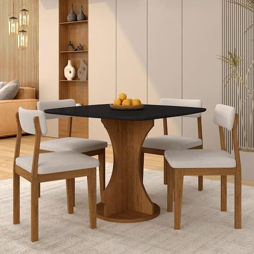 Detalhes Técnicos da Mesa Acabamento: Pintura UV Texturizada Material da Base: MDF 15/25MM Material do Tampo: MDF 25MM Medida da Mesa Montada:L:90CMxP:90CMxA:80CM Tonalidade da Mesa: Freijó/Preto Borda P.U NÃO POSSUÍ VIDRO