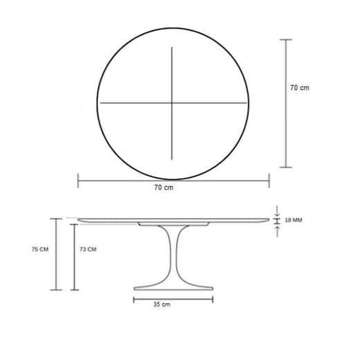 Mesa de Jantar Saarinen Redonda, Tampo 70 cm em MDF Laqueado, com contra tampo em MDF, Base em alumínio fundido com pintura automotiva PU.
