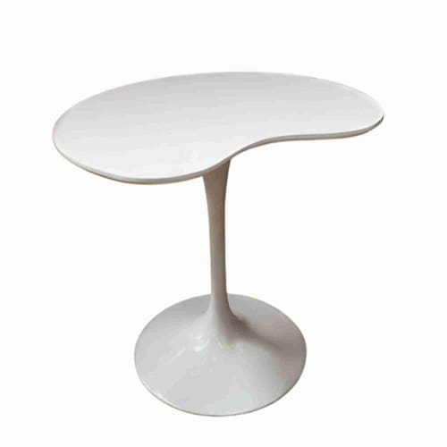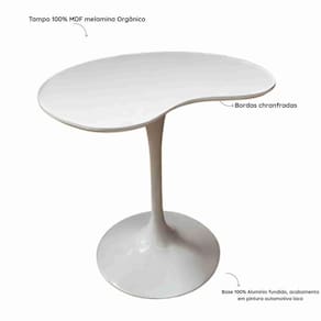 Medidas: Altura 75cm | Tampo 80cm (formato orgânico)Base: Epóxi com pintura automotiva em laca brancaTampo: MDF 18mm com acabamento Pintura Laca Off white e bordas chanfradas