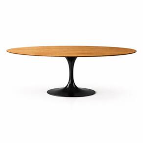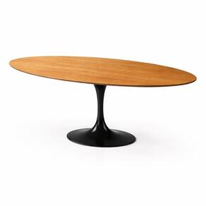 Mesa de Jantar Saarinen Oval, Tampo em MDF Laminado em Madeira, com contra tampo em MDF, Base em alumínio fundido com pintura automotiva PU.