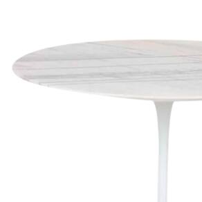 Mesa de Jantar Saarinen Redonda, Tampo 110 cm em GRANITO MÁRMORE BRANCO EXTRA, com contra tampo em MDF, Base em alumínio fundido com pintura automotiva PU.